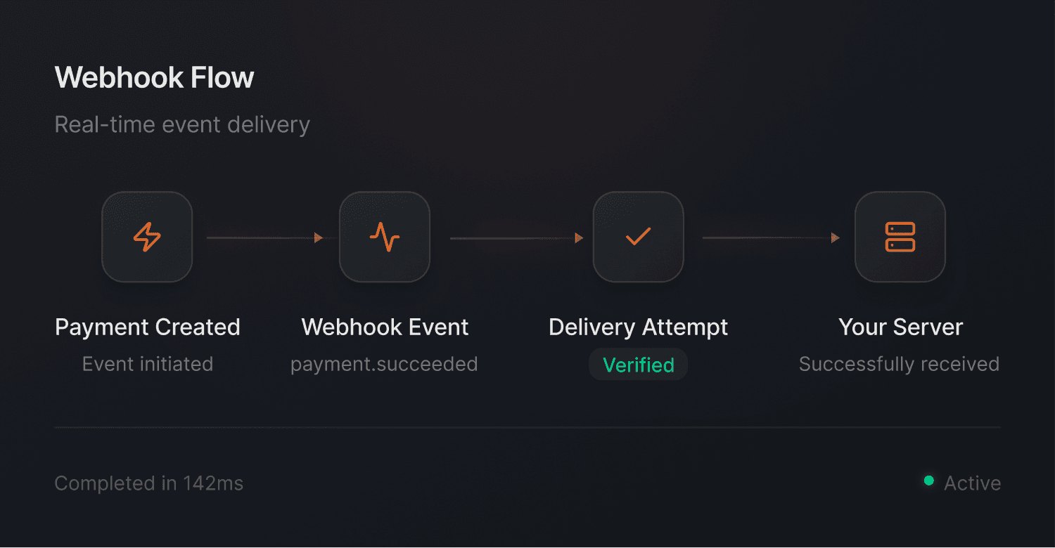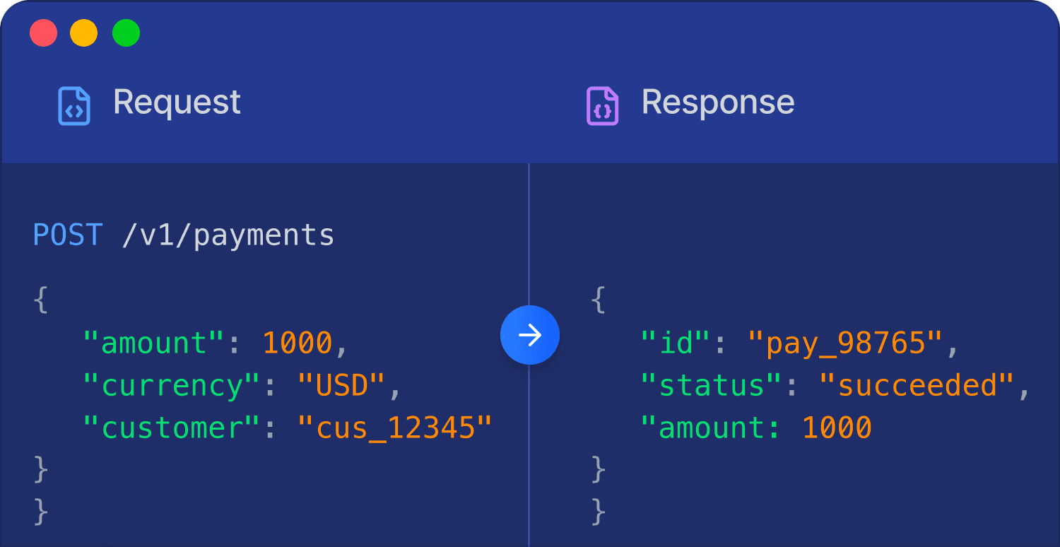 Clean, versioned APIs with complete documentation and SDKs for JavaScript, Python, Go, and PHP, built for teams that ship fast on reliable payment infrastructure.